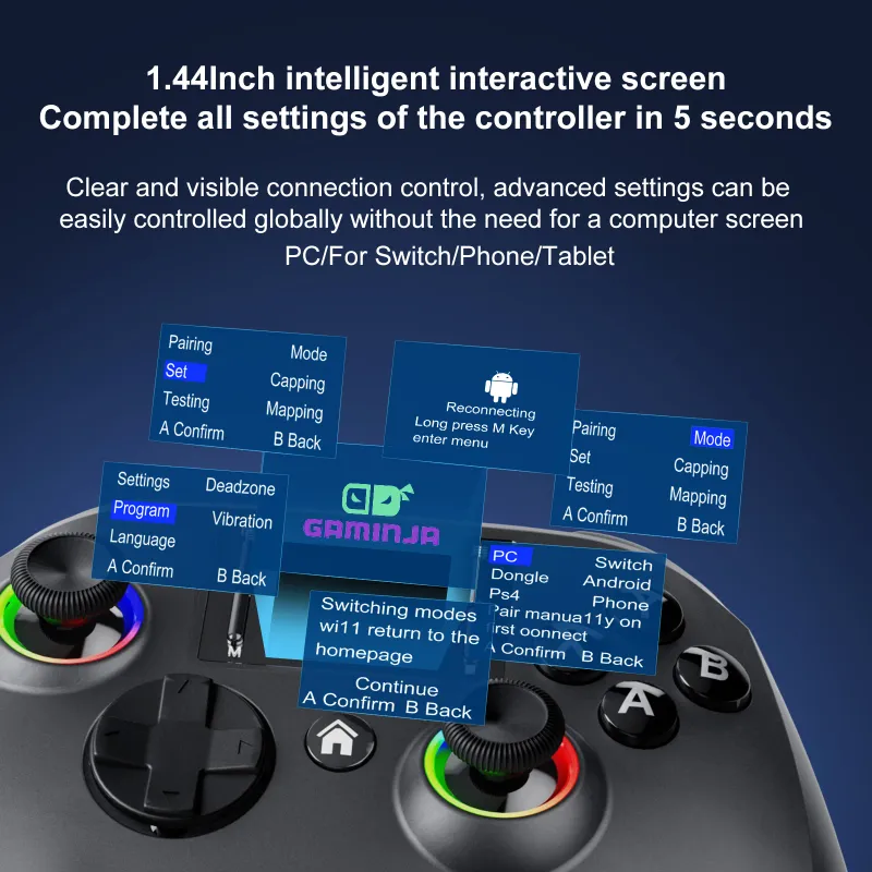 2) 1.44-inch Smart Interactive Display: Easily set up your game controller.