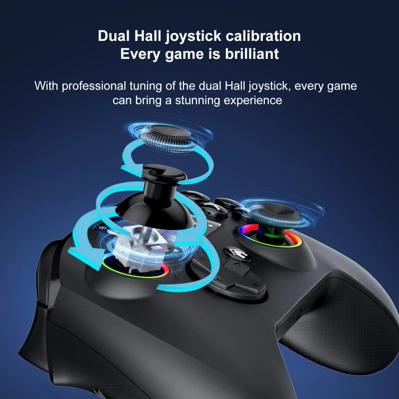 7) The left and right joystick of the controller have RGB lighting effects, and the RGB lighting effects can be adjusted by yourself.
