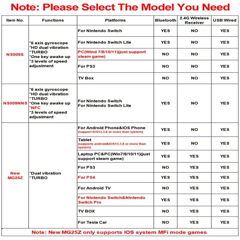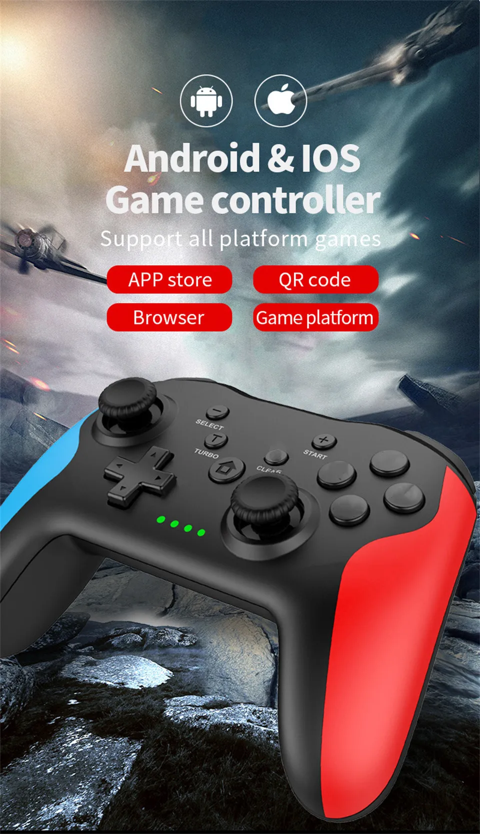 2) applicable devices: smartphone/tablet/smart TV, set-top box/pc/For PS3 console/n-Switch console; (Bluetooth, 2.4g, wired connection)