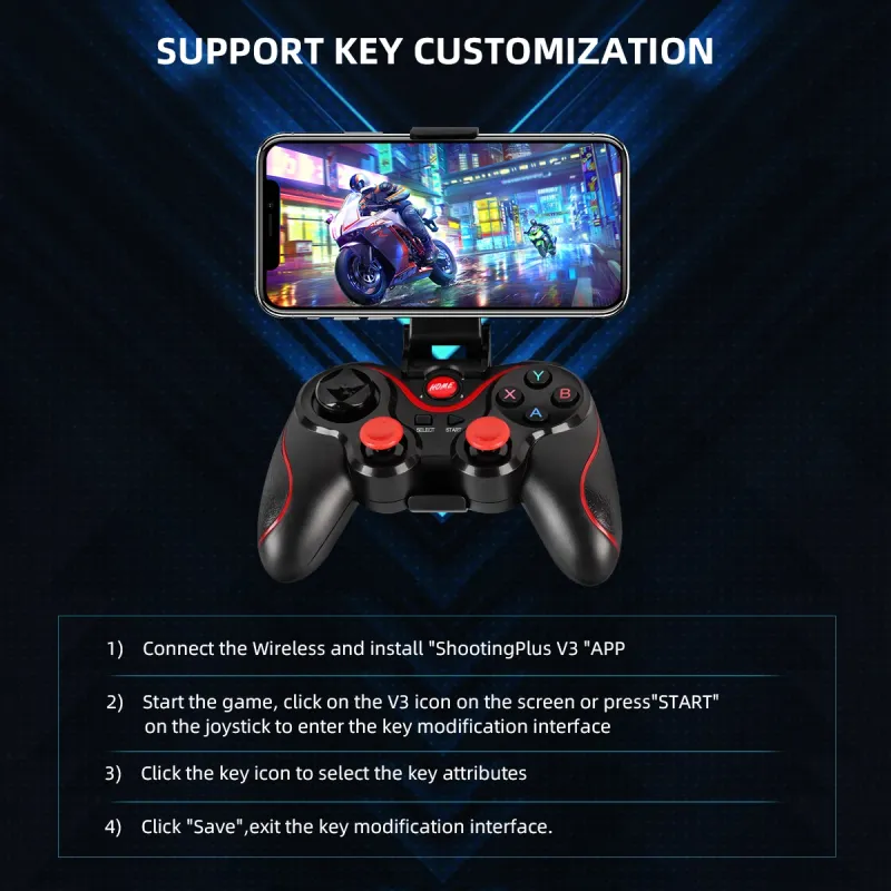 This Bluetooth control handle is compatible with multi-platform games. Universal Bluetooth connectivity means you can play games on Bluetooth-enabled Android phones and tablets! It can be used for Android smart phones/iOS/TV boxes/PS3/laptops/PC.