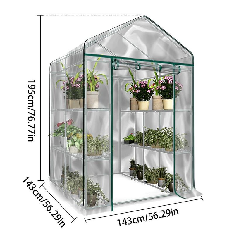 Garden Greenhouse PVC Cover Plants Keep WarmSunroom For Flowers Roll-up Windows (Without Iron Frame) 143*143*195cm/143*73*195cm