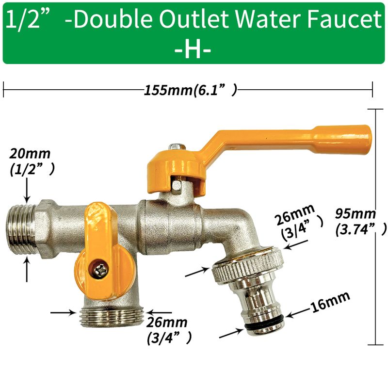 Garden Hose Brass Tap Faucet Adapter 1/2'' IBC Water Tank Connector 2-Way 1-Way Irrigation Joint Replacement Fitting Ball Valve