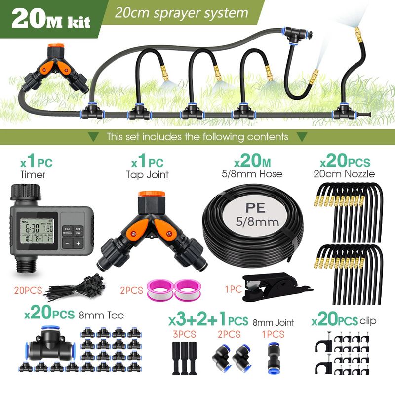 Garden Programmable Timer Misting Cooling System 360° Free-bend Misting Nozzle Adjustable Atomizer Sprayer Outdoor Watering Kits