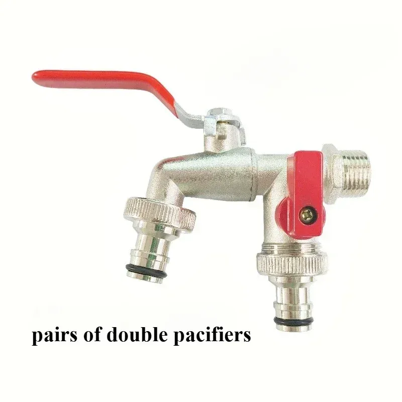 Garden Water Faucet Tape Keys 1/2'' 3/4'' 1 Inlet 2 Outlet Bibcock with Dual Nipple Water Splitter Connector Tap Valve Waterstop