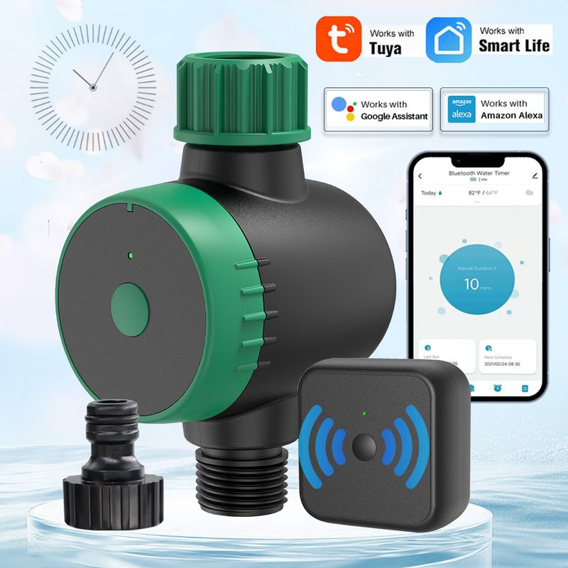 - It is suitable for lawn watering, potted drip irrigation, swimming pool water storage, atomization cooling, temporary watering and other scenarios. WiFi gateway Bluetooth connection, remote voice control switch, support ordinary single timed watering, can also set cycle timed watering plan, manual weather delay, can query the watering record (if the mobile phone is not connected for a long time, the watering record may be lost).