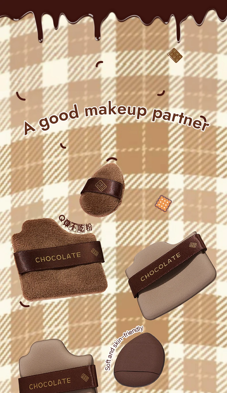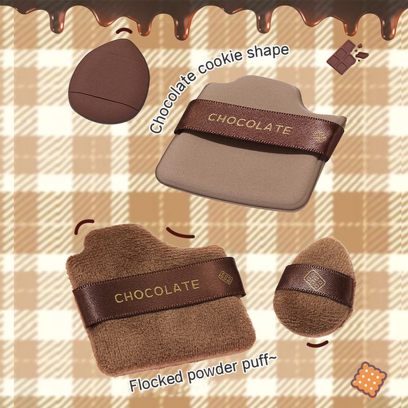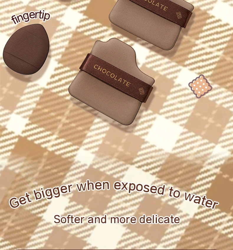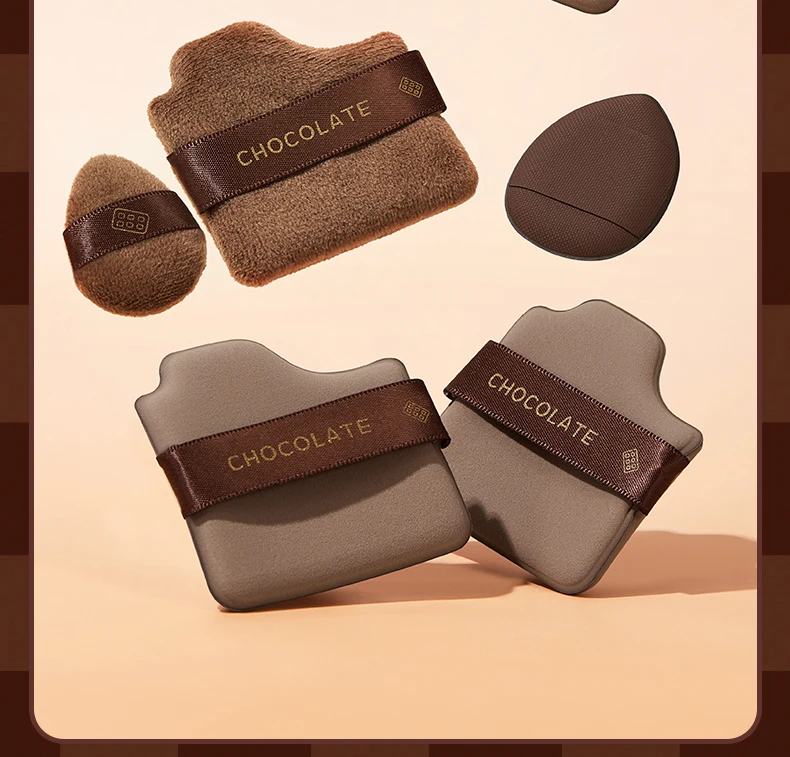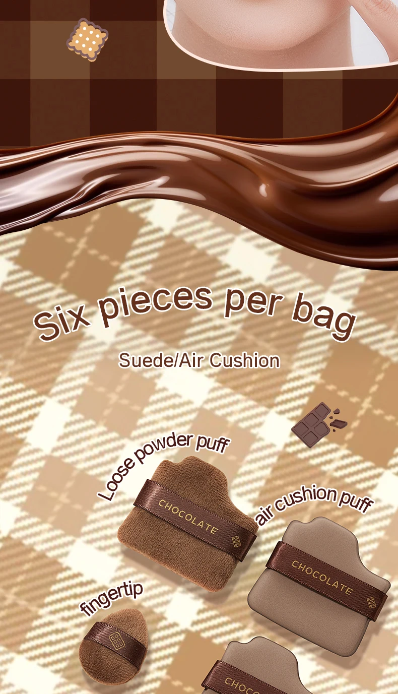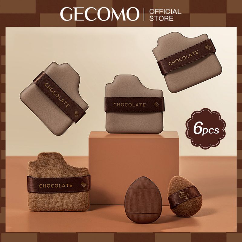 GECOMO 6 PCS Chocolate Powder Puff Set, Wet And Dry Sponge, Soft Leather Flocking Makeup Cushion