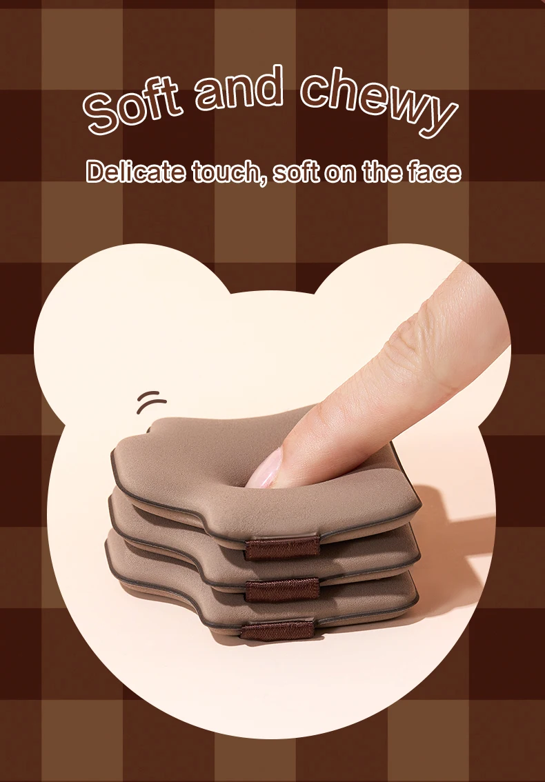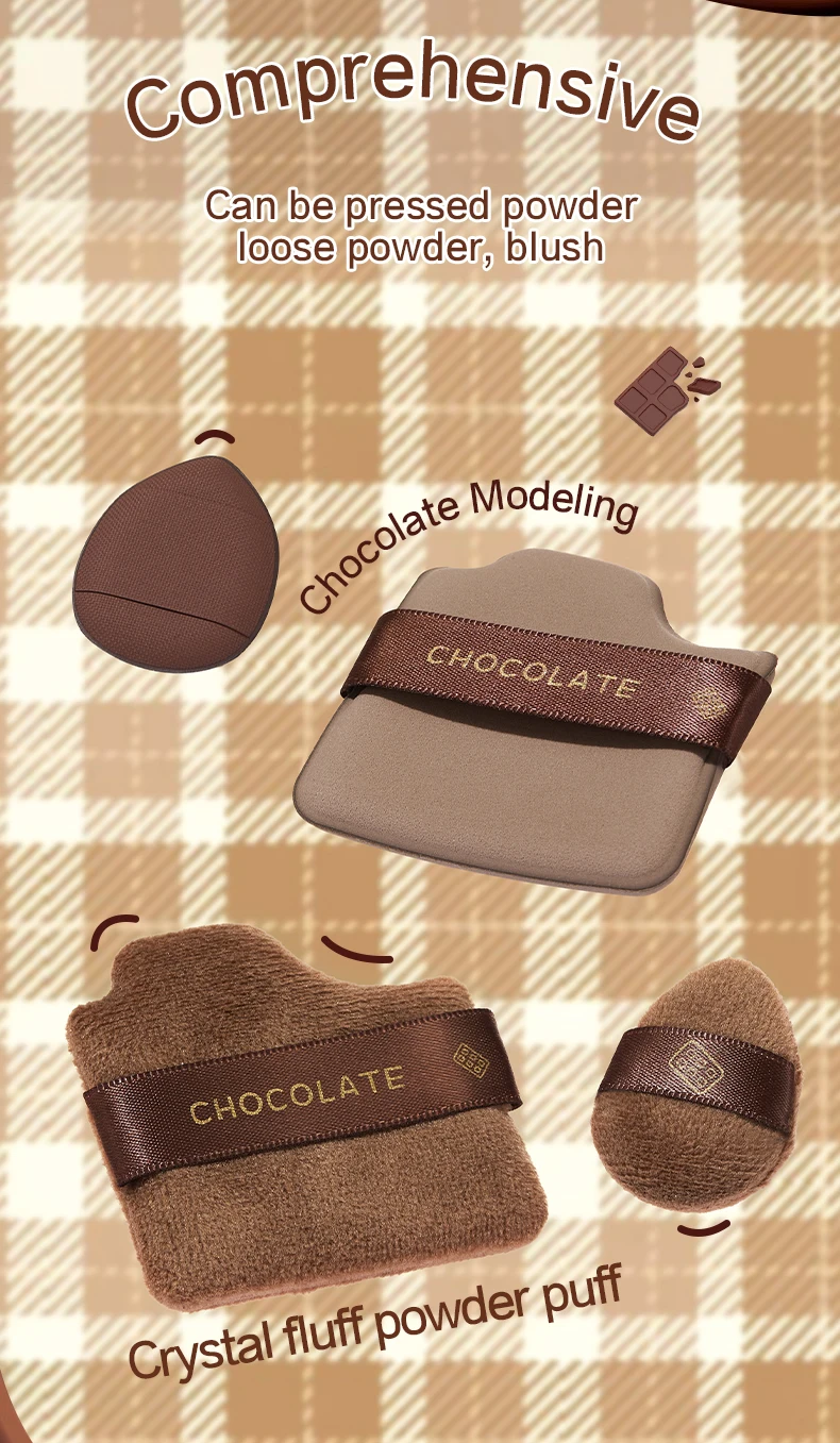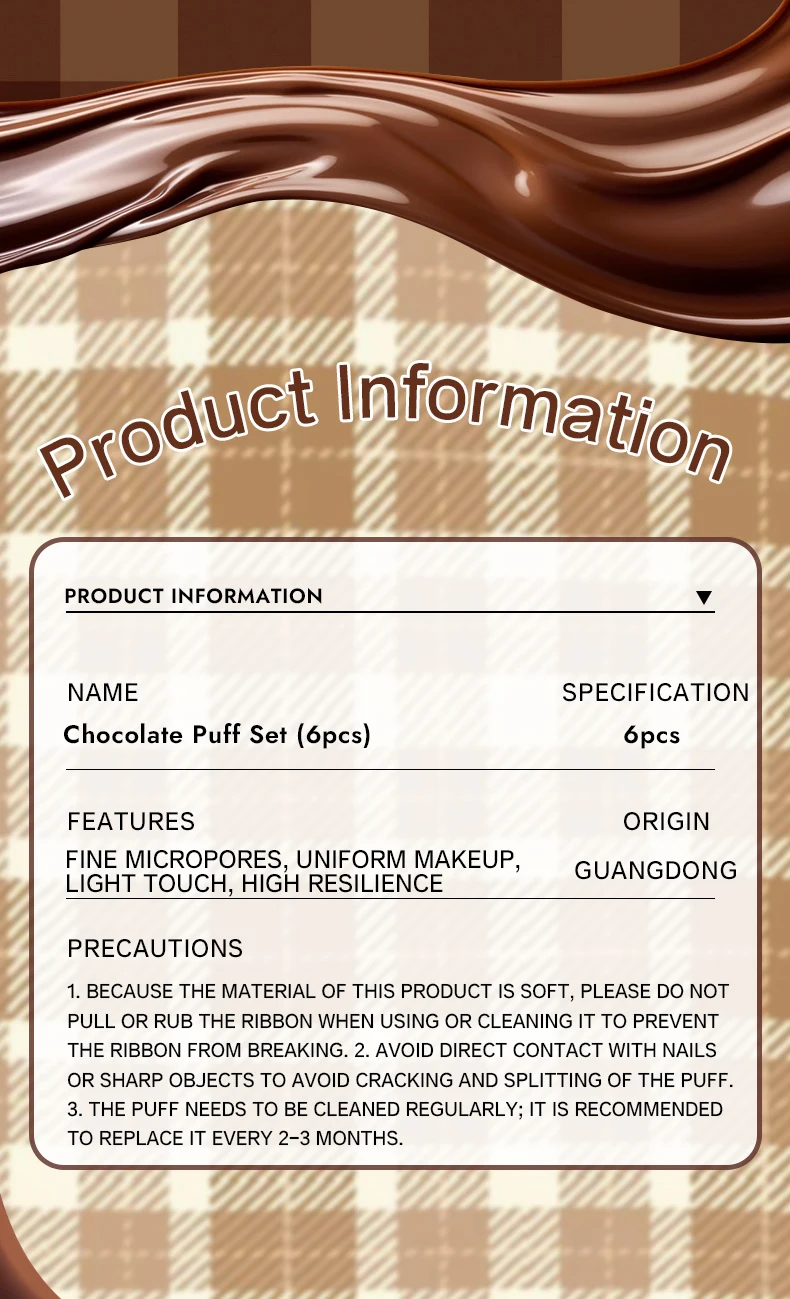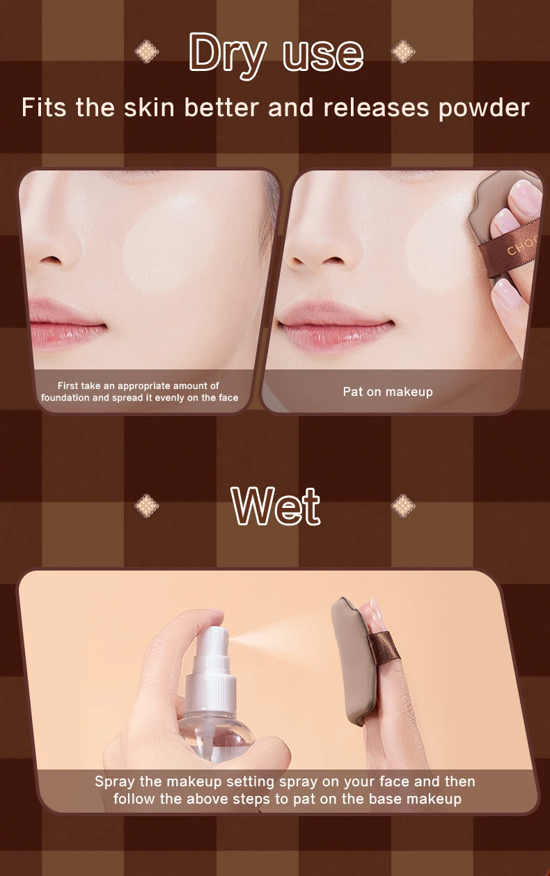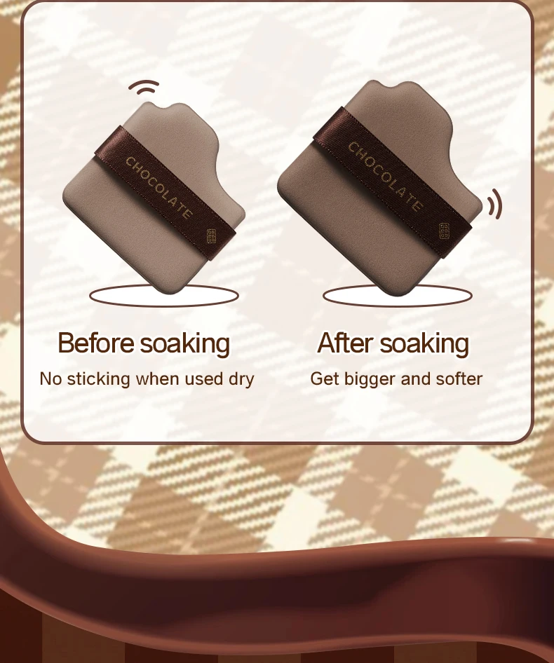 GECOMO 6 PCS Chocolate Powder Puff Set, Wet And Dry Sponge, Soft Leather Flocking Makeup Cushion