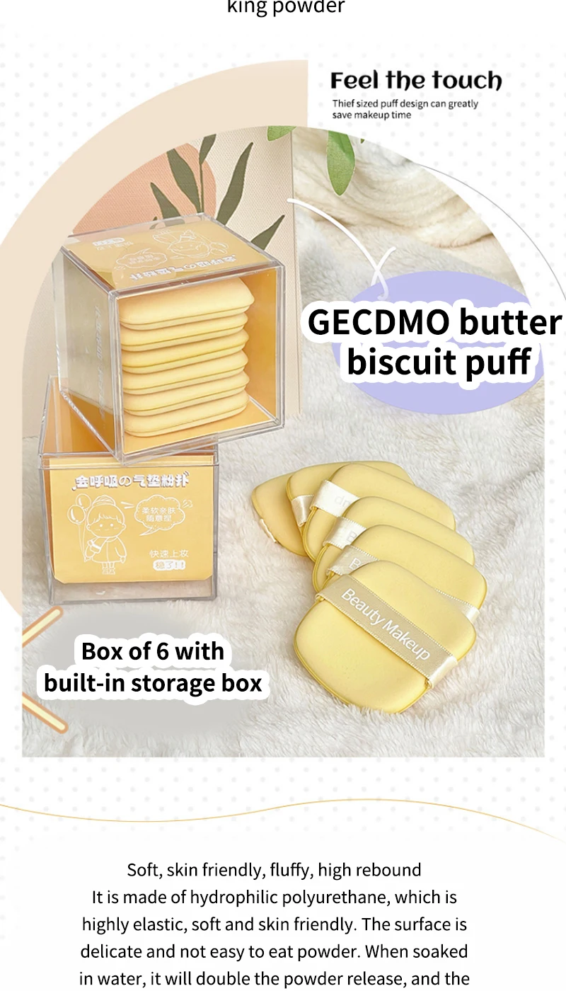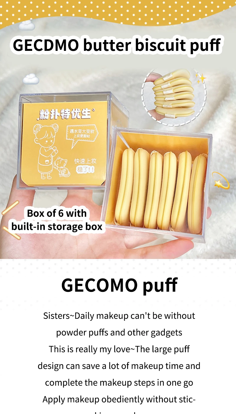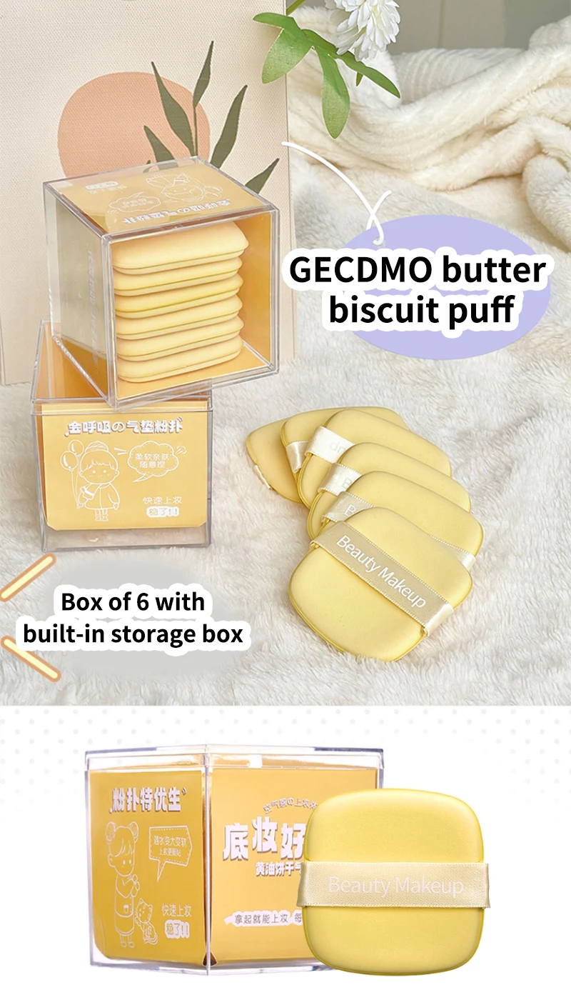 GECOMO Butter Biscuit Dual-use Cushion Puff - Velvety Soft, Perfect for Wet or Dry Application with a Smooth and Flawless Finish