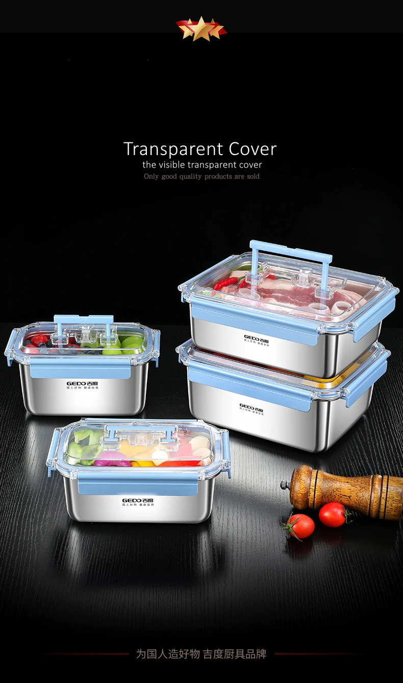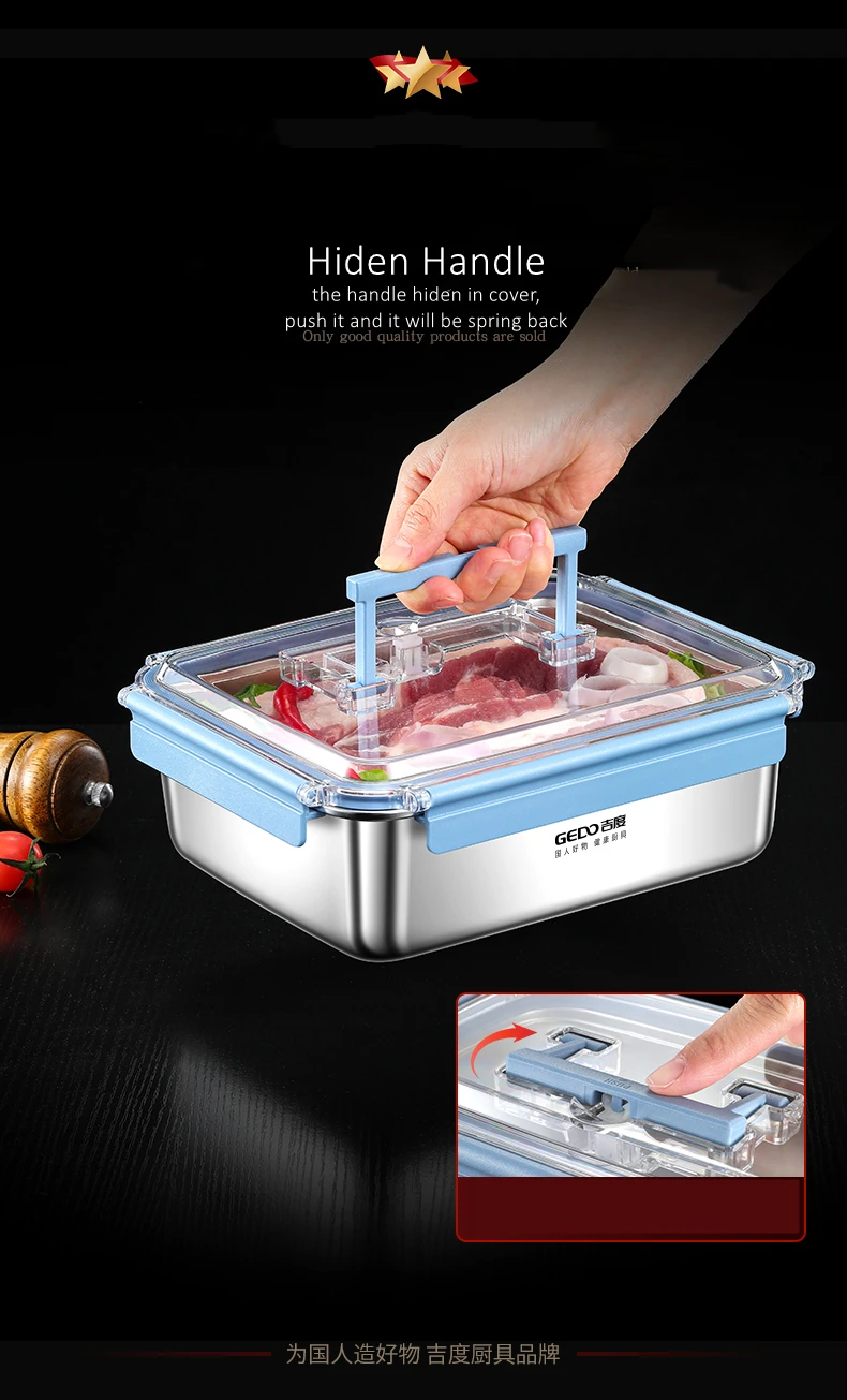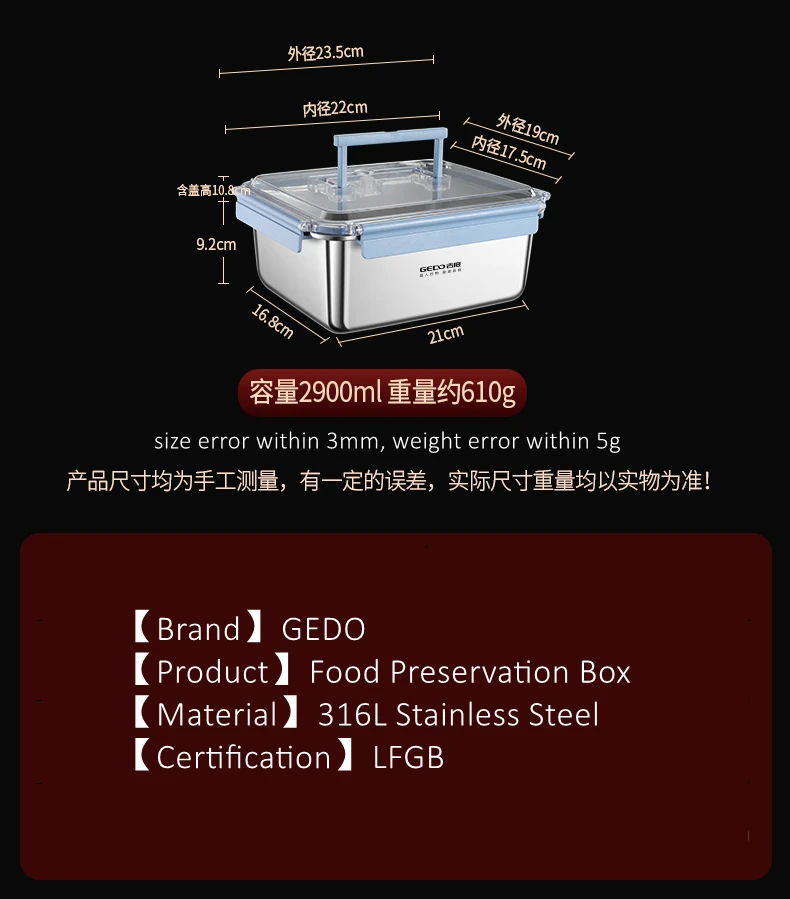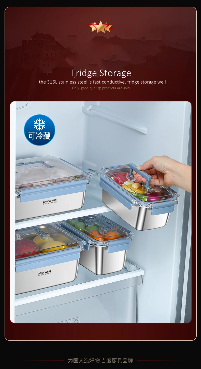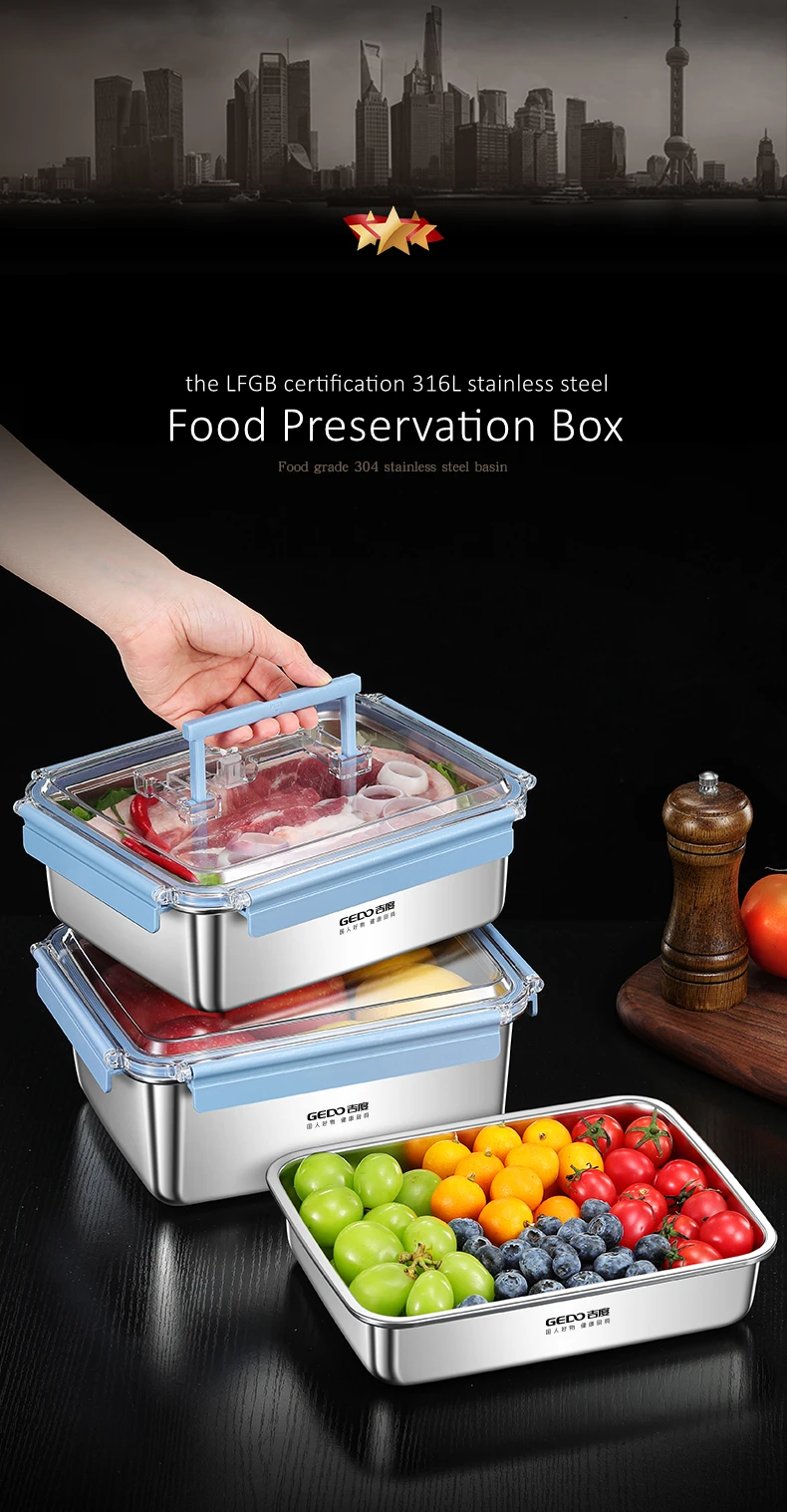 GEDO LFGB Certification 316 Stainless Steel Fridge Food Preservation Box 99.9% Anti-bacterial Fruit Vegetable Fresh Keeping Case