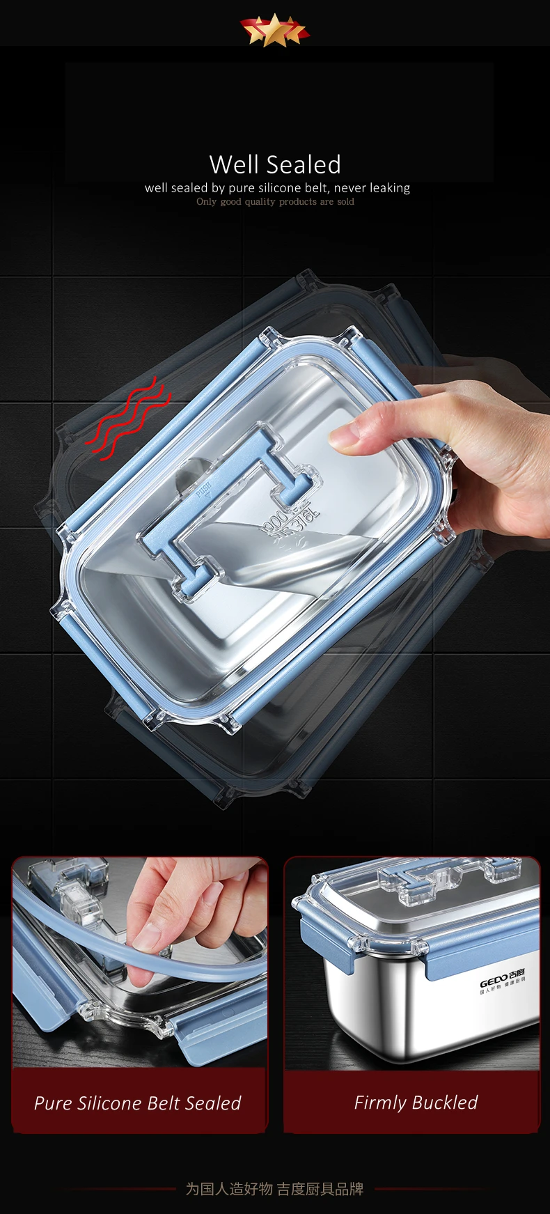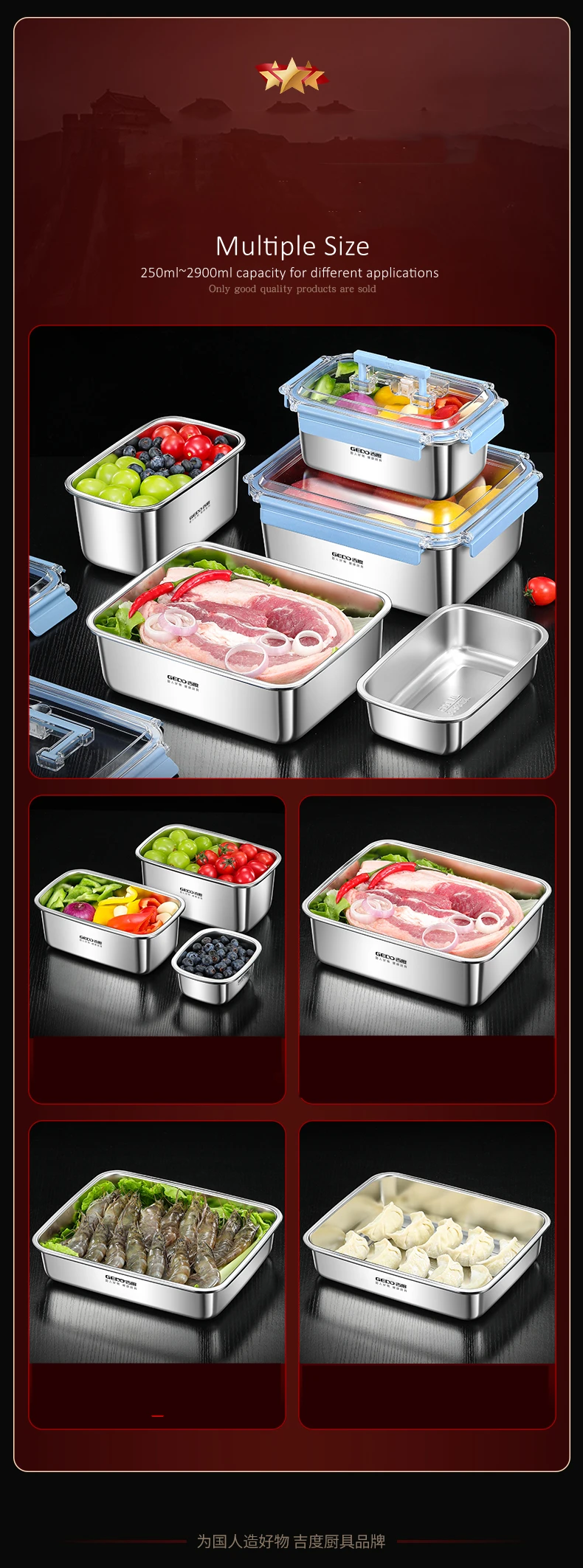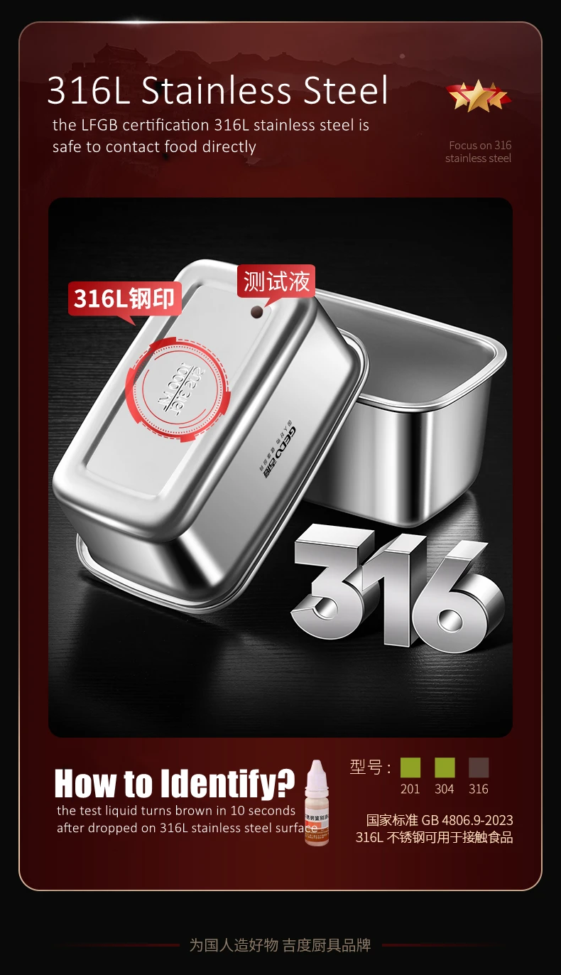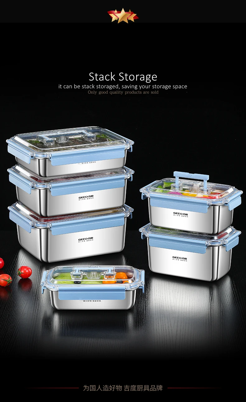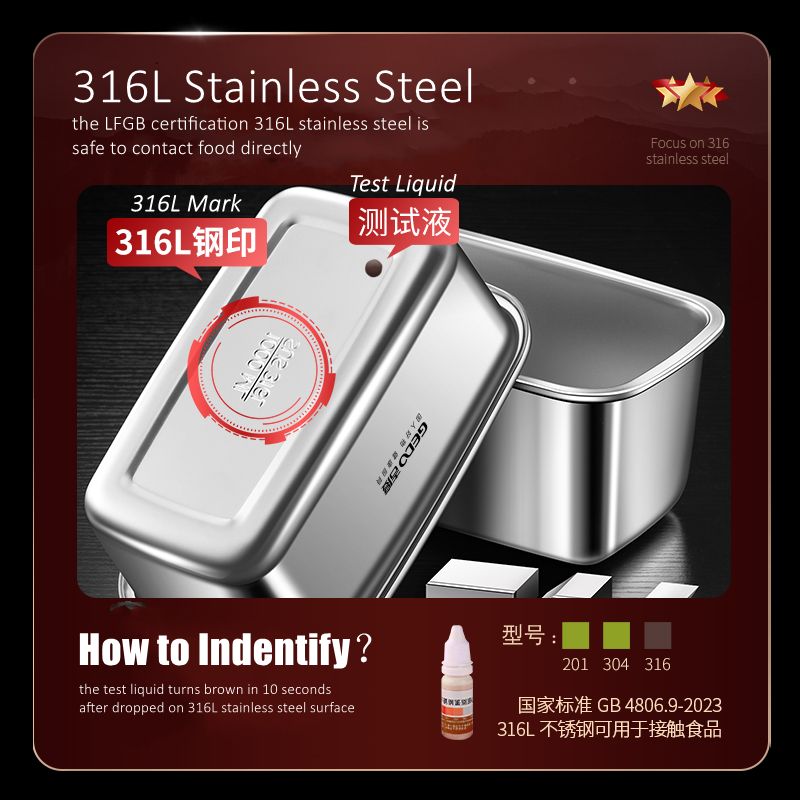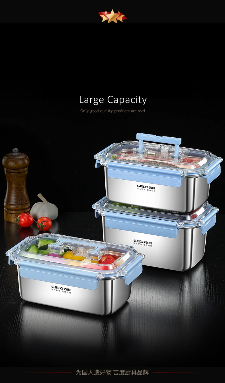 GEDO LFGB Certification 316 Stainless Steel Fridge Food Preservation Box 99.9% Anti-bacterial Fruit Vegetable Fresh Keeping Case