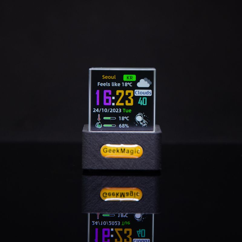 GeekMagic Mini Crystal Display Weather Forecast Gadget with WiFi Desktop Clock Station,Transparent Small TV for Game Decoration