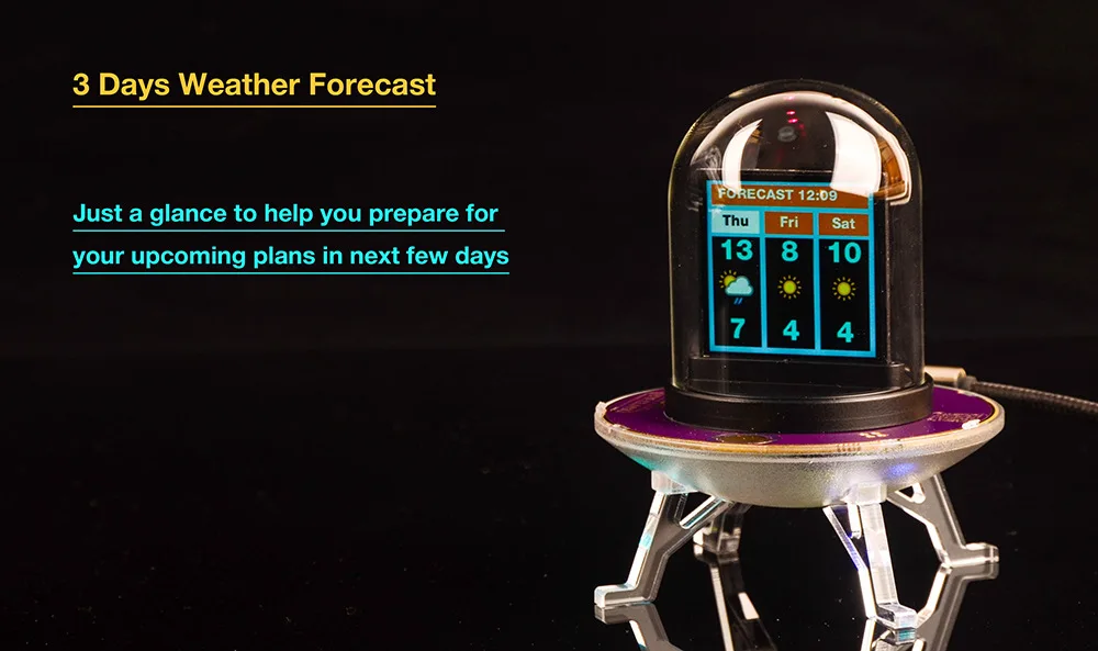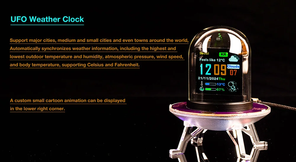 2.4G WiFi Connectivity: Real-Time Updates for 3-Day Weather Forecast (Outdoor Temp/Humidity, Pressure, Wind Speed, Max/Min Temp), Stocks, Exchange Rates & Cryptocurrencies (Bitcoin, etc.). Supports Windows Hardware Monitoring, Countdown Timer & Auto-Cycling Multi-Themes