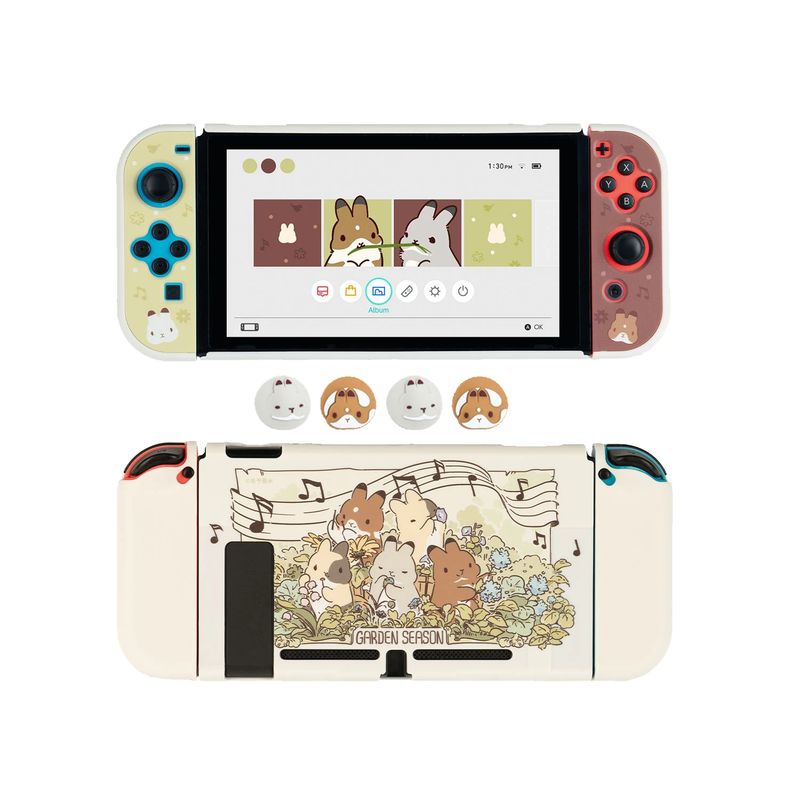GeekShare Protective Case Compatible with Nintendo Switch/ Switch OLED,4PCS Garden Season Silicone Thumb Grip Caps,Team Timothy