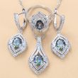 Gem-inlaid Pendant Earrings Necklace Ring Ladies Three-piece Set Colorful Suit No.8