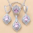 Gem-inlaid Pendant Earrings Necklace Ring Ladies Three-piece Set Pink No.7