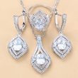 Gem-inlaid Pendant Earrings Necklace Ring Ladies Three-piece Set White Suit No.7