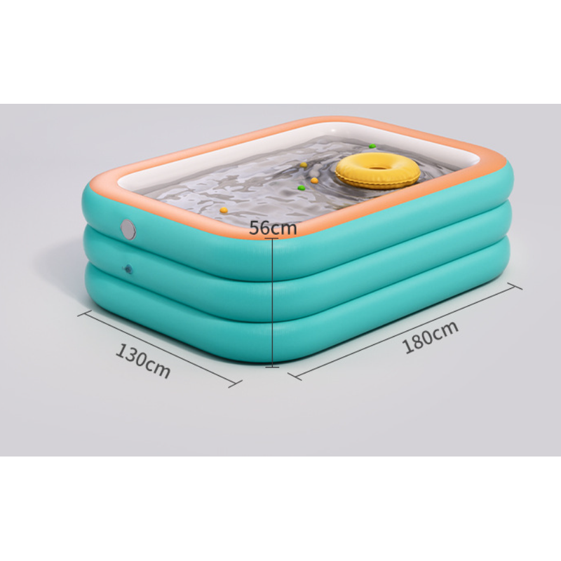 Beat the heat and enjoy endless summer fun with this large inflatable swimming pool! Perfect for kids and adults alike, this waterproof pool is made of durable materials to withstand hours of splashing and playtime. Set it up in your backyard or patio and create your own personal oasis. With its generous size (approximately 10 feet x 6 feet x 2 feet or 3 meters x 1.8 meters x 0.6 meters), there's plenty of room for the whole family to cool off and make a splash. The included air pump makes inflation a breeze, so you can have your pool ready in no time. Whether you're hosting a pool party or just looking to beat the heat, this inflatable swimming pool is the ultimate summer essential. Dive into fun and refreshment with this convenient and affordable outdoor pool!