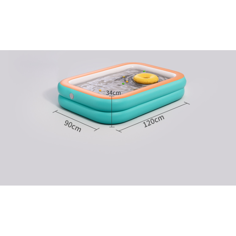 Beat the heat and enjoy endless summer fun with this large inflatable swimming pool! Perfect for kids and adults alike, this waterproof pool is made of durable materials to withstand hours of splashing and playtime. Set it up in your backyard or patio and create your own personal oasis. With its generous size (approximately 10 feet x 6 feet x 2 feet or 3 meters x 1.8 meters x 0.6 meters), there's plenty of room for the whole family to cool off and make a splash. The included air pump makes inflation a breeze, so you can have your pool ready in no time. Whether you're hosting a pool party or just looking to beat the heat, this inflatable swimming pool is the ultimate summer essential. Dive into fun and refreshment with this convenient and affordable outdoor pool!
