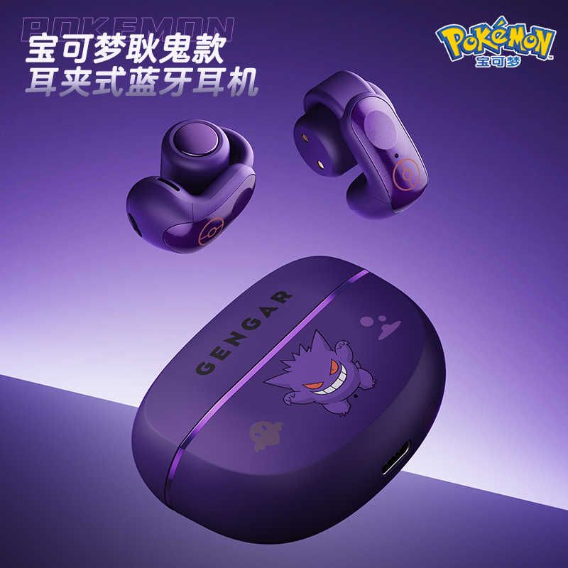 Gengar Pokemon Anime Bluetooth Headset Ear Clip Style Not Reduction Hifi Stereo Game Wireless Sport Earbuds Endurance Trendy Gif