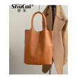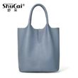 Genuine Grade Leather Women Commuter Tote Bag Ladies Soft Cowhide Tote Shoulder Handbag Large Female Bucket Bag Luxury Designer