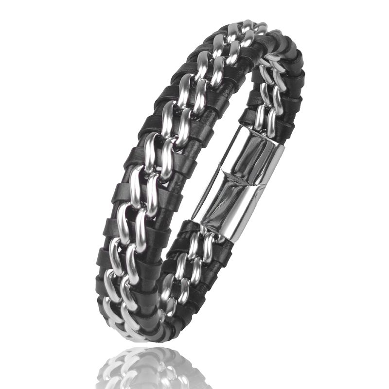 Genuine Leather Chain Bracelet for Men Magnetic Stainless Steel Clasp in Plated Gold Exclusive Jewellery Gift Wholesale Dropping