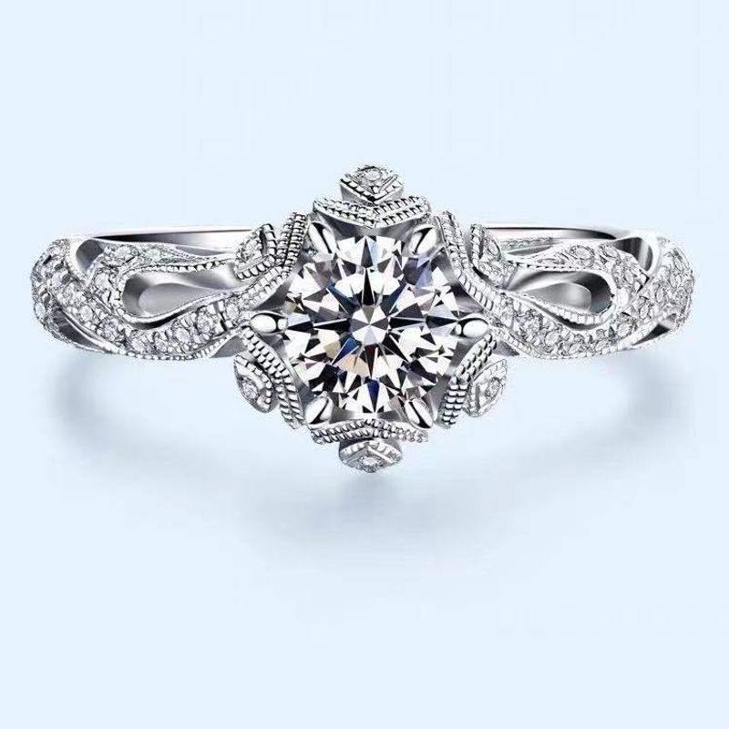 Genuine Moissanite Luxury Inlaid Romantic First Snow Diamond Ring 520plum blossoms 2carat Size15