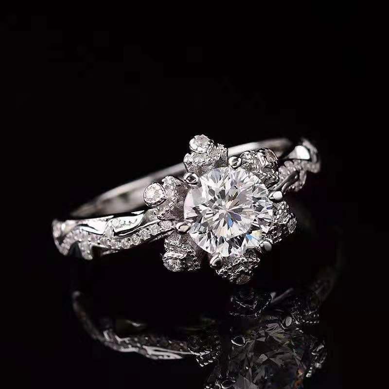 Genuine Moissanite Luxury Inlaid Romantic First Snow Diamond Ring D hearts and arrows 1carat Size13