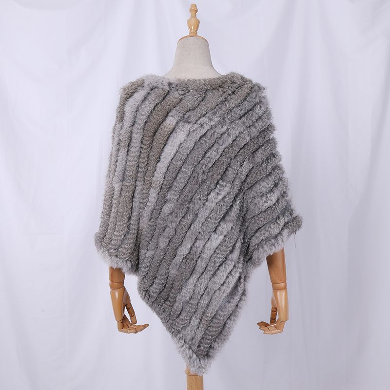 Genuine Rabbit Fur Knitted Natural Fur Poncho Fashion Wrap Coat Shawl Lady Scarf Natural Fur Wedding Party Wholesale Cape