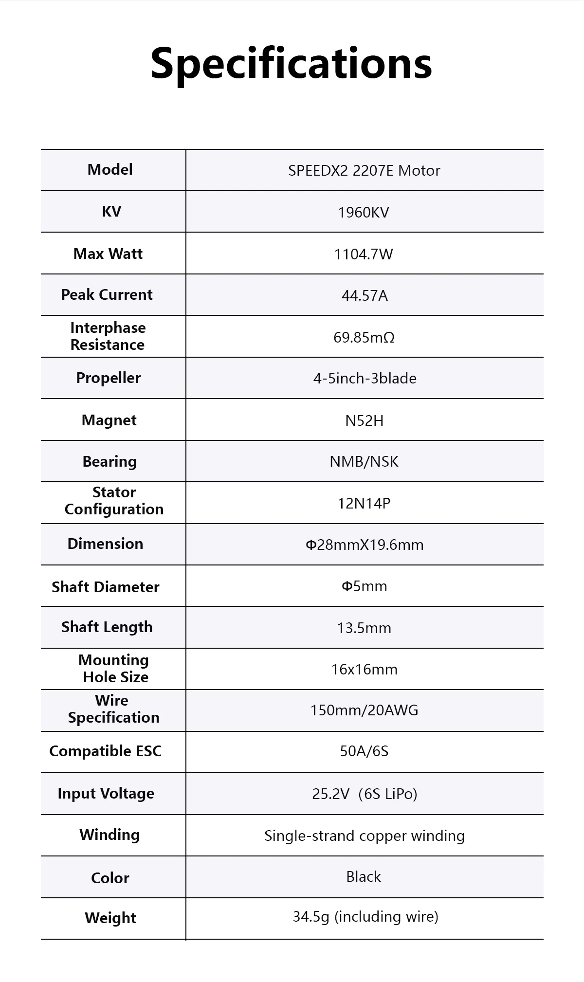 Model: SPEEDX2 2207E Motor