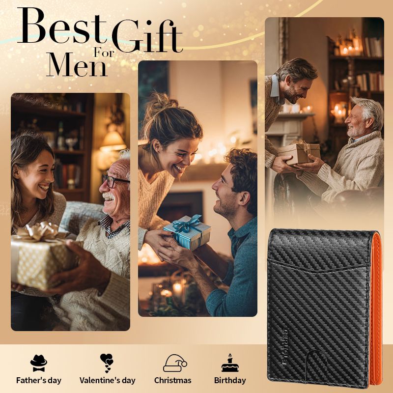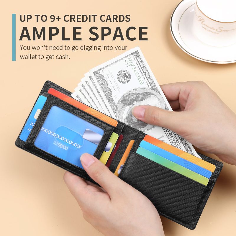 GERUOLA Men's Slim Foldable Wallet with Anti-theft Brush, Slim Front Card Slot Large Capacity, 9 Card Slots Slots, Couple Mutual