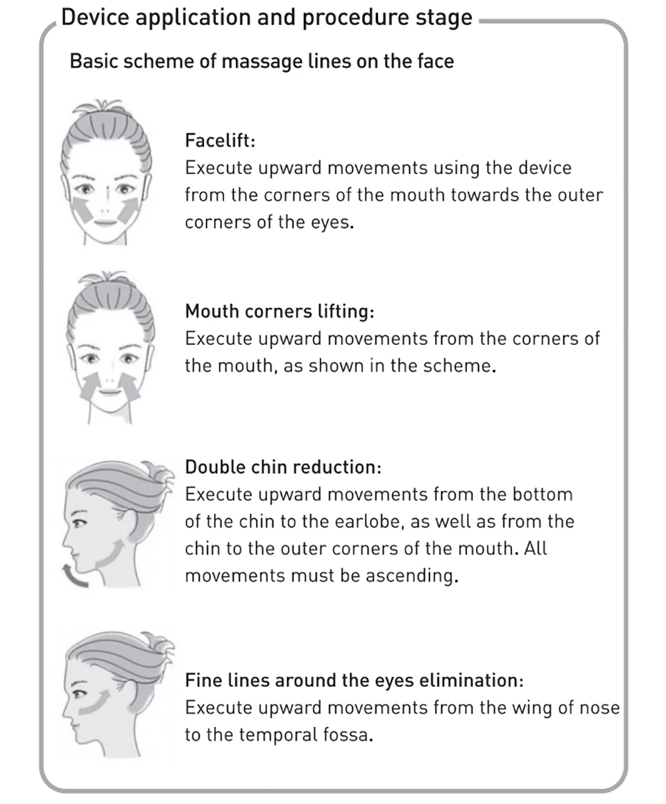 With regular use you get a steady result: the skin is smoothed, the oval of the face tightened and the dark circles under the eyes disappear. Intensity mode (1-5) can be selected individually.