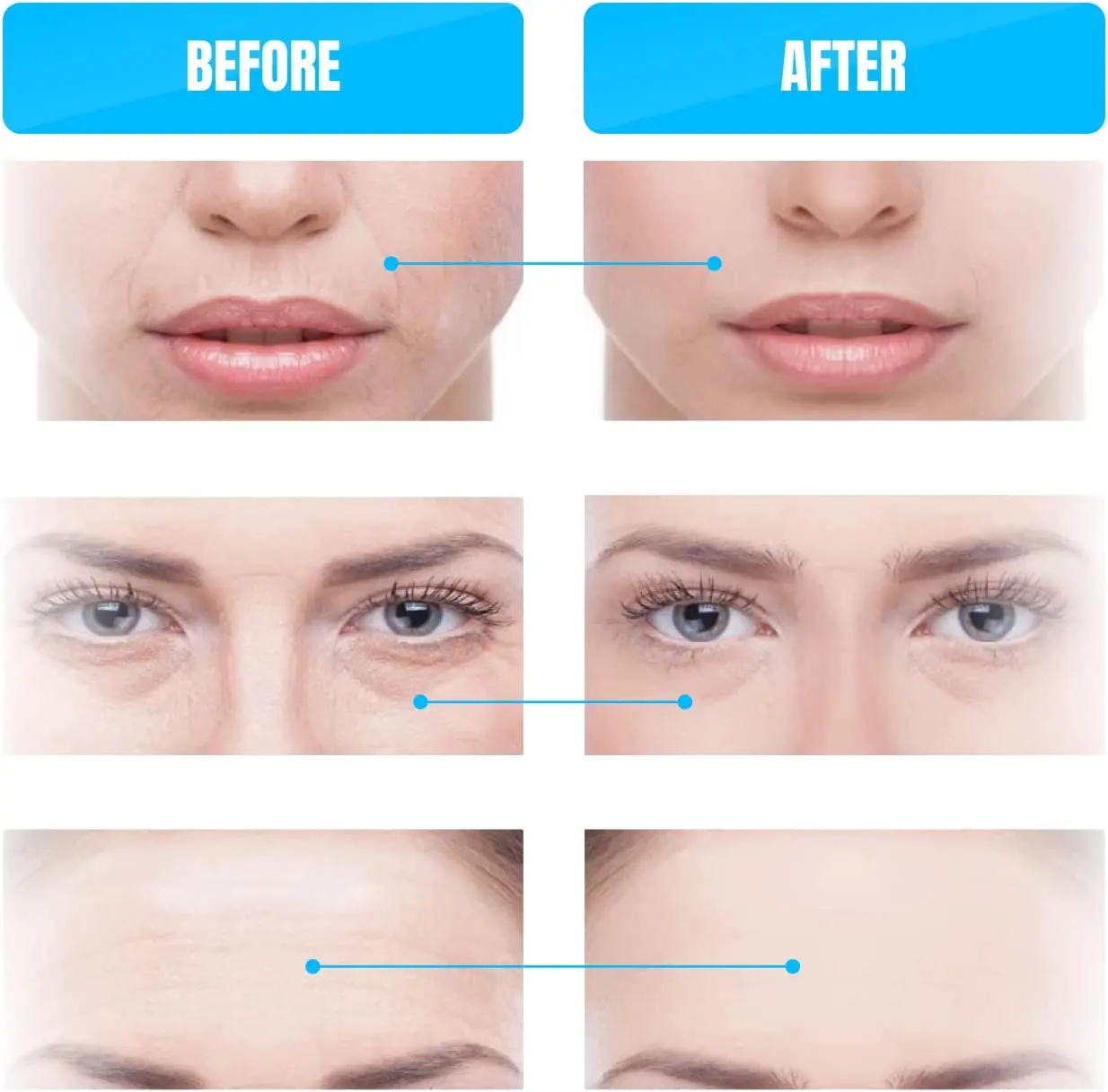 Expression lines elimination;natural, uniform, fresh skin tone;rejuvenating effect:pores contraction