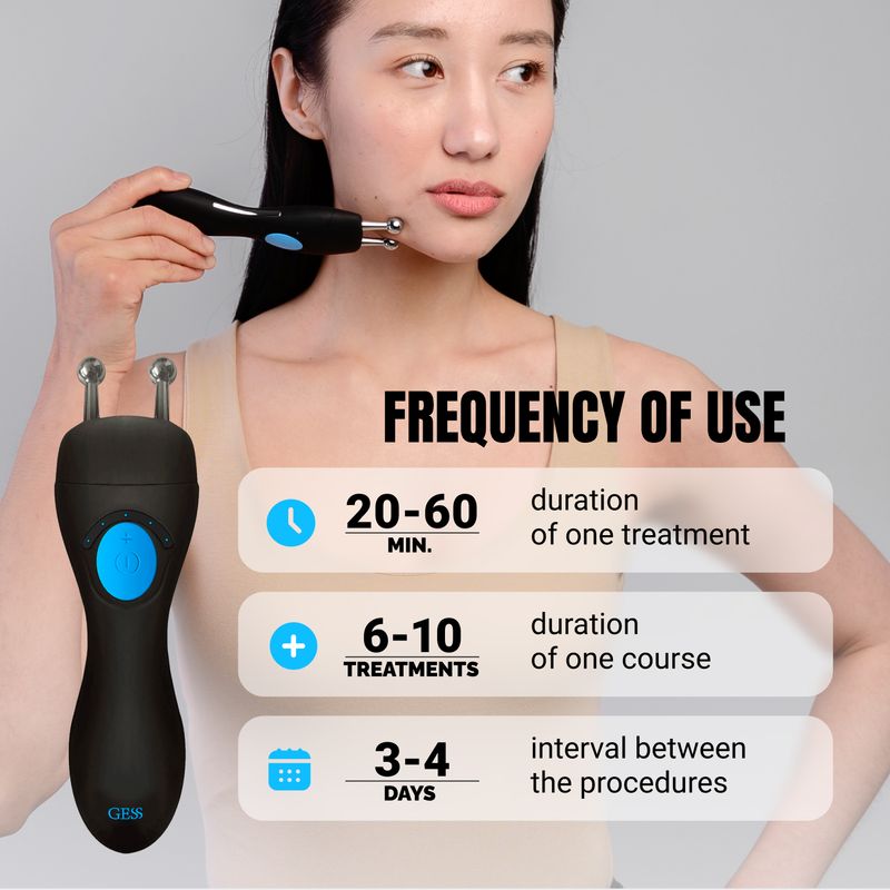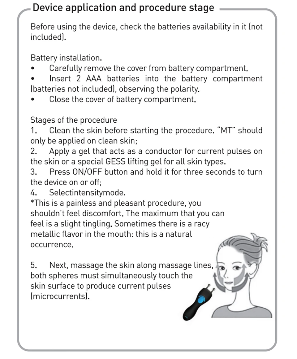 The portable cosmetic face lift device MTof GESS brand allows you to carry out the procedure of microcurrenttherapy at home.