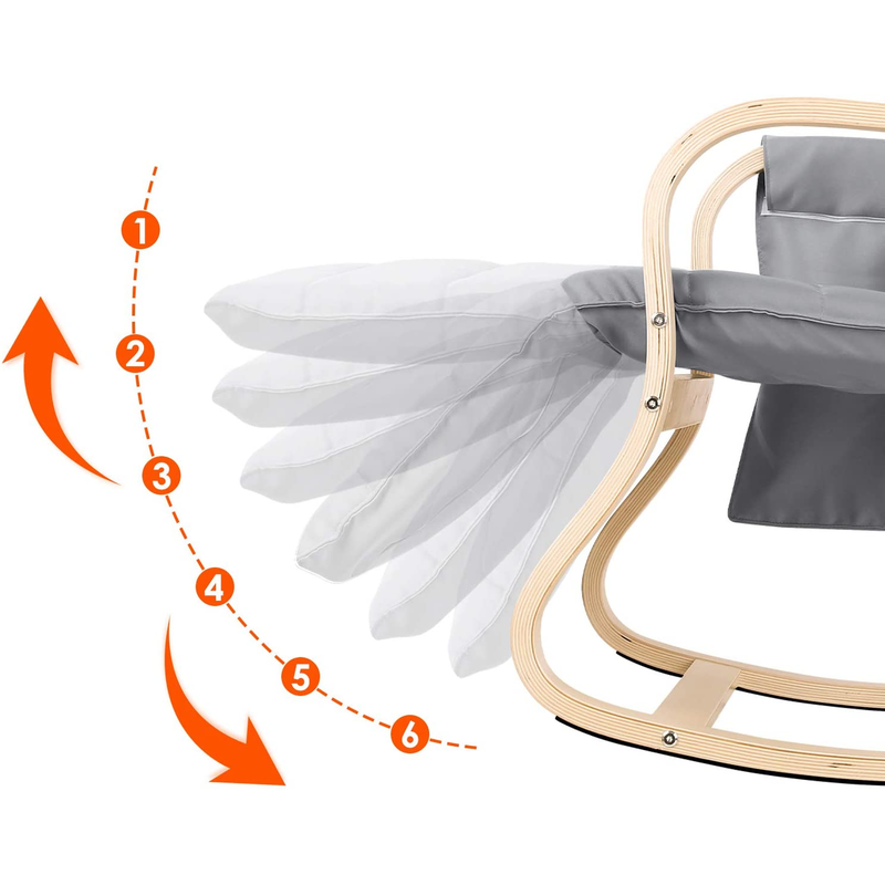 Whether as a reading armchair on the balcony, in the living room, in the bedroom, in the garden or on the terrace, the swing chair impresses with its beautiful look and perfectly combined minimalist colors. Due to its stable wooden structure, the chair rocks easily and thus ensures a very pleasant driving experience.