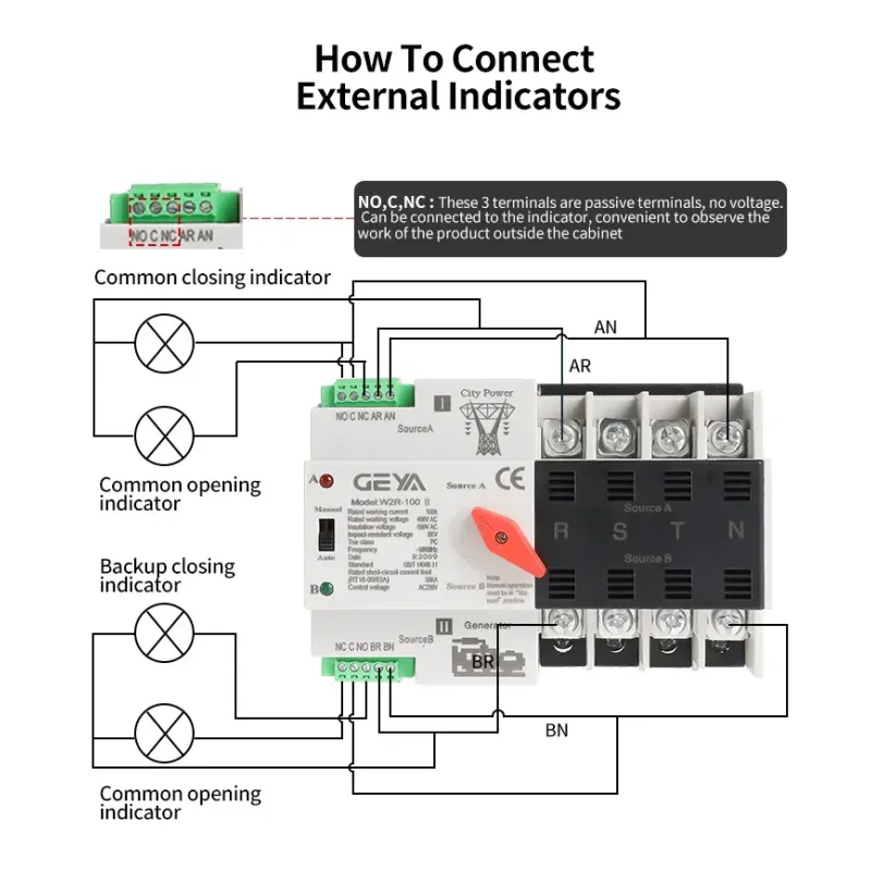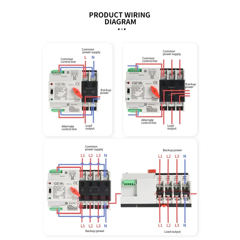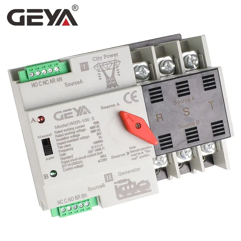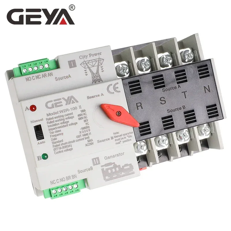 GEYA W2R Mini ATS 2P 3P 4P Automatic Transfer Switch Electrical Selector Switches Dual Power Switch Din Rail Type ATS 63A 100A110V 220V