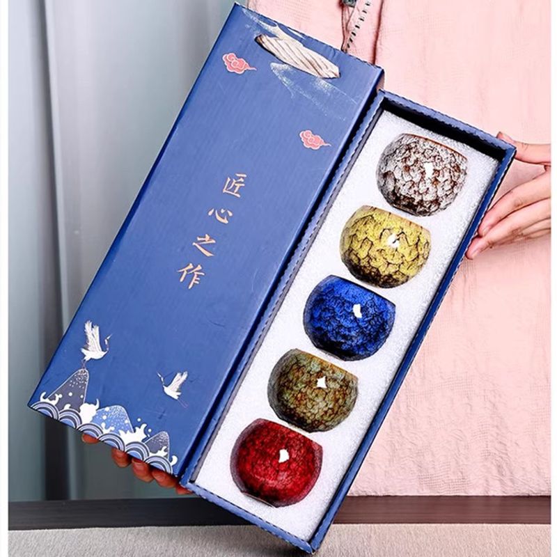 Gift Box & Five Elements Gift Box Kiln Change China Ceramic Tea Cup Porcelain Kung Fu Cups Set Pottery Coffee Mug Tableware Cup