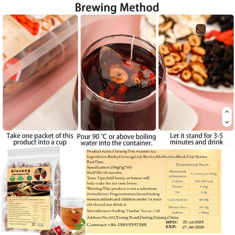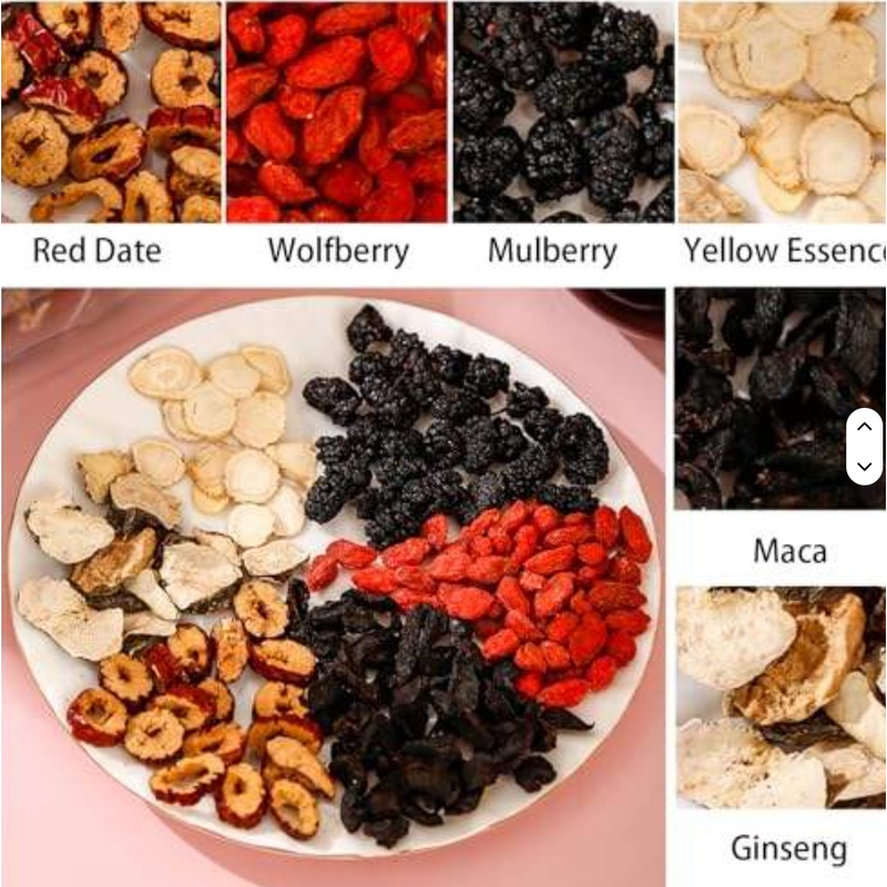 Ingredients: red dates, dried maca slices, medlar, mulberry, etc.