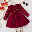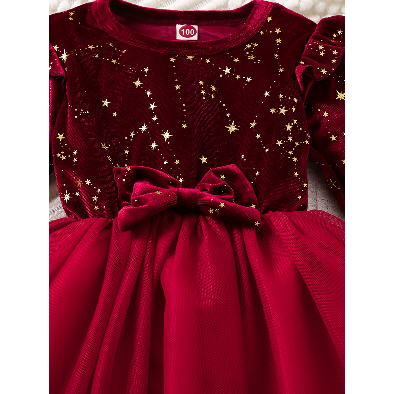 Girl Dress Autumn Winter Velvet Long Sleeved Mesh Bow Princess Dress Children's New Year Children Party Festive Dress For Girl