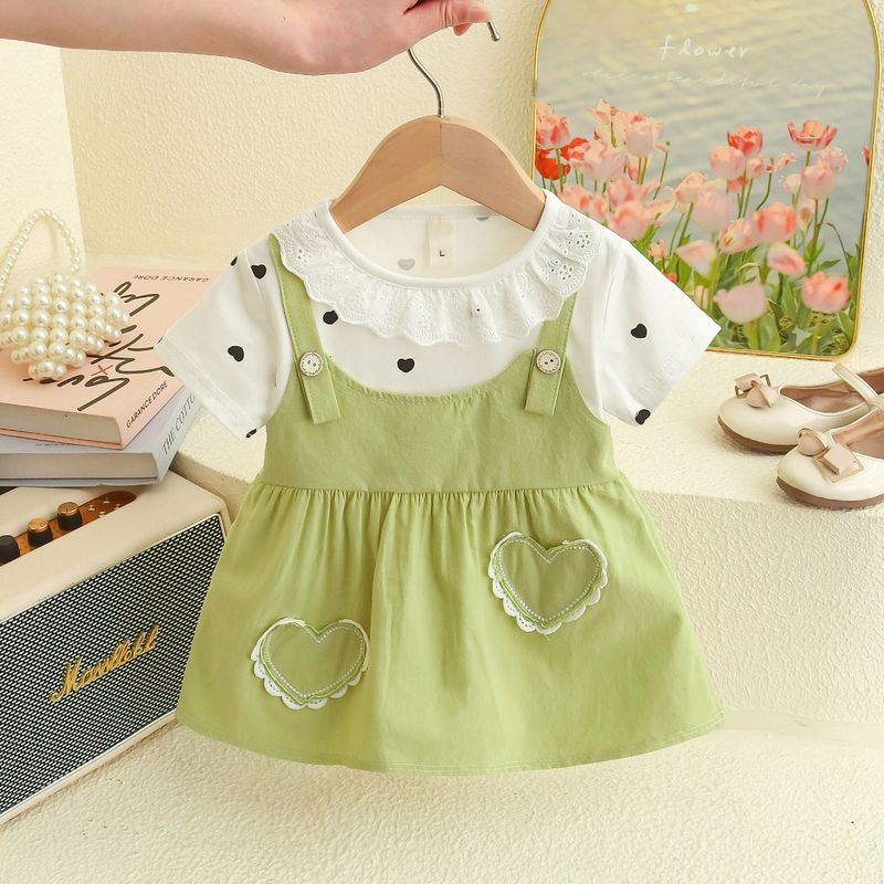 Girl Kid's Dress Summer Two Heart-Shaped Printed Casual Girls' Dress Sweet Baby Girl Clothes