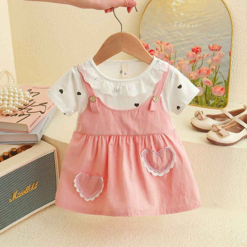 Girl Kid's Dress Summer Two Heart-Shaped Printed Casual Girls' Dress Sweet Baby Girl Clothes