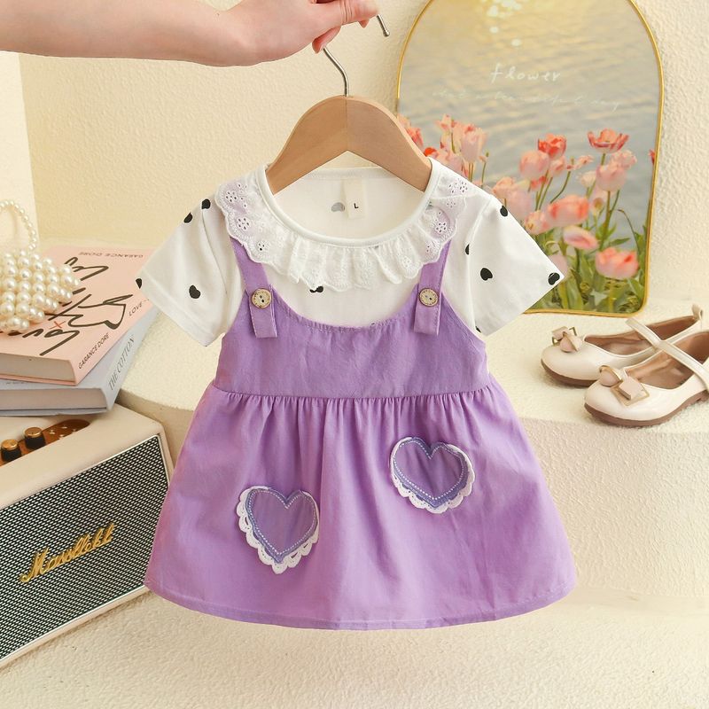 Girl Kid's Dress Summer Two Heart-Shaped Printed Casual Girls' Dress Sweet Baby Girl Clothes