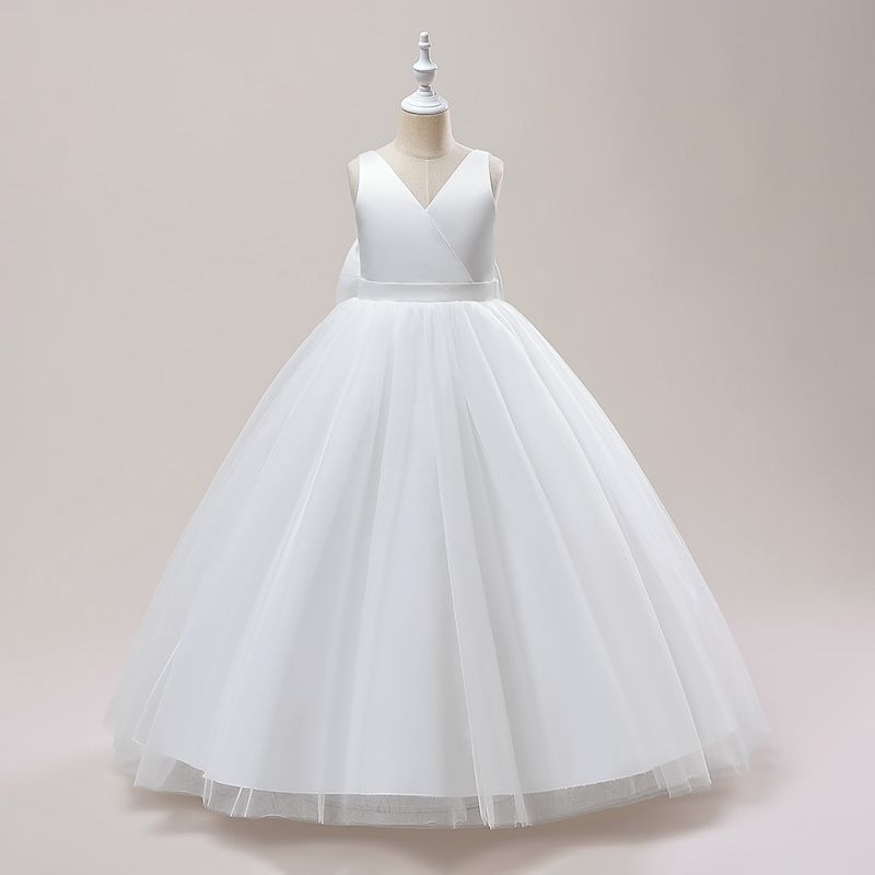 Girl Long White Bridesmaid Dresses For Wedding Prom Gown Big Bow Girls Party Dress Kids First Communiom Formal Evening Vestidos