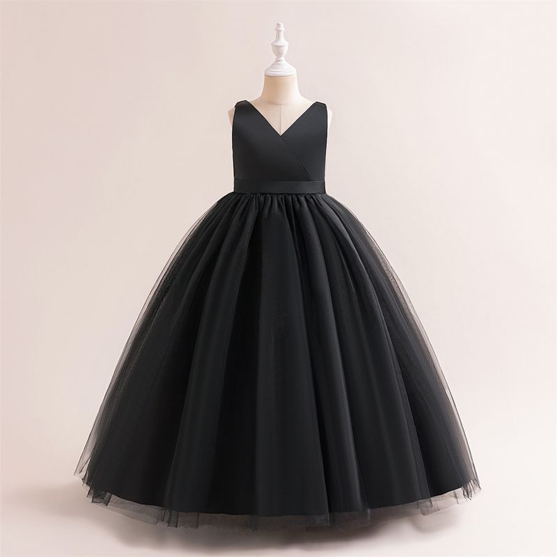 Girl Long White Bridesmaid Dresses For Wedding Prom Gown Big Bow Girls Party Dress Kids First Communiom Formal Evening Vestidos