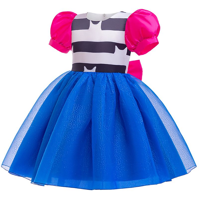 Girl's dress 4-10 years old fashionable bow striped bubble sleeve princess dress Halloween Gabby doll role-playing costume