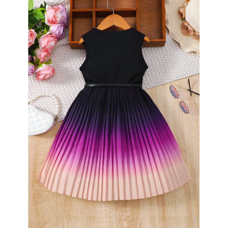 • Gradient Color Blocking :The dress features a unique gradient color blocking design, adding a stylish and trendy touch to your child's summer wardrobe.