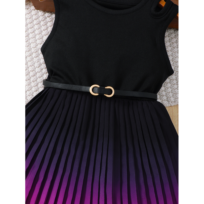 • Gradient Color Blocking :The dress features a unique gradient color blocking design, adding a stylish and trendy touch to your child's summer wardrobe.