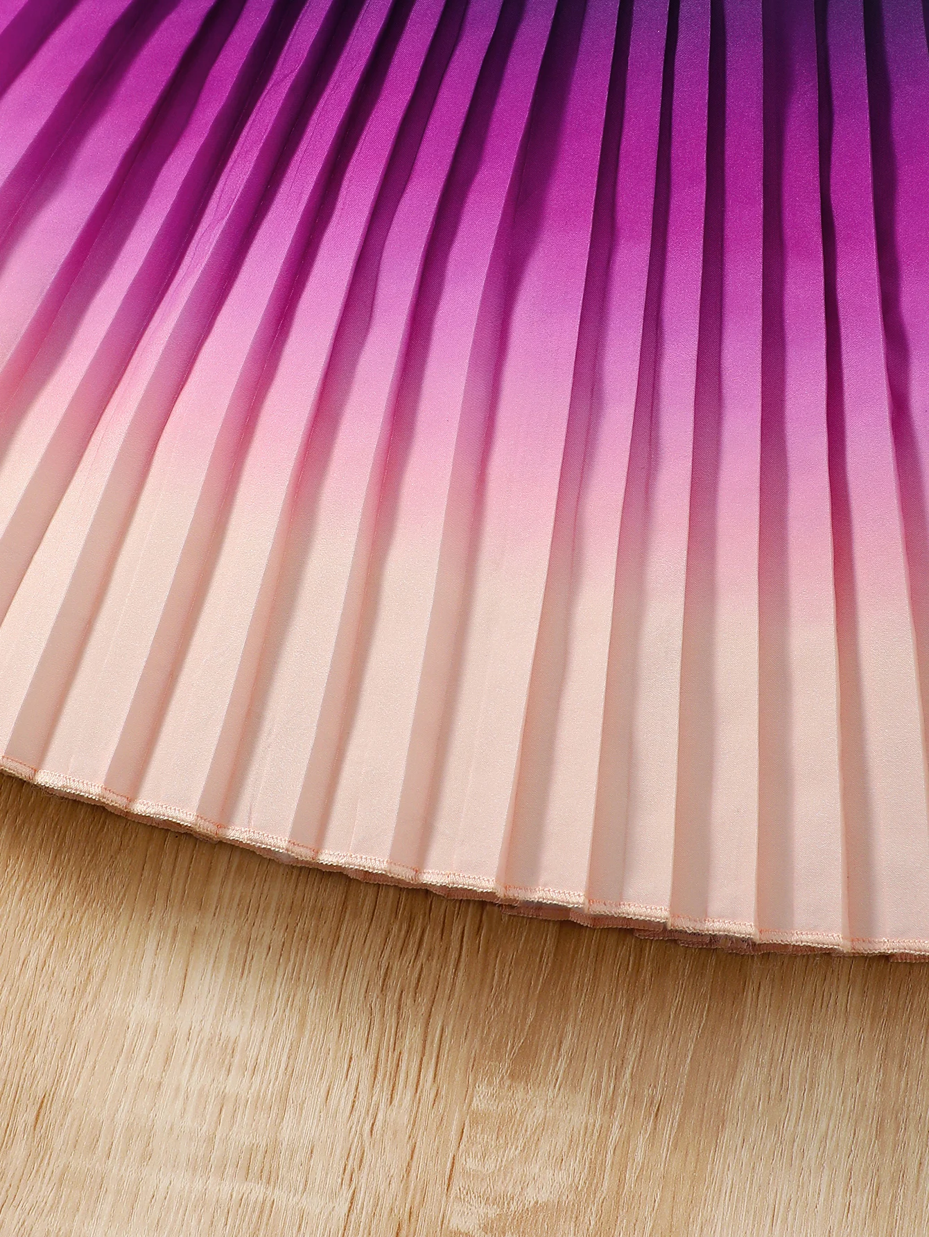 • Gradient Color Blocking :The dress features a unique gradient color blocking design, adding a stylish and trendy touch to your child's summer wardrobe.