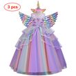Girl's Long Unicorn Rainbow Wedding Party Dress Girl's Birthday Party Unicorn Character Dance Performance Dress Three Piece Set