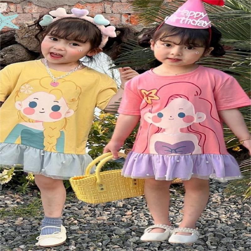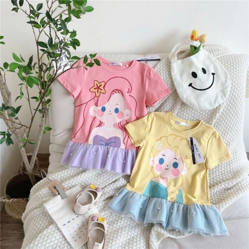 Girl's Patchwork Mesh Dress Summer Korean Version Cute Cartoon for Children Clothing Princess Dresses
