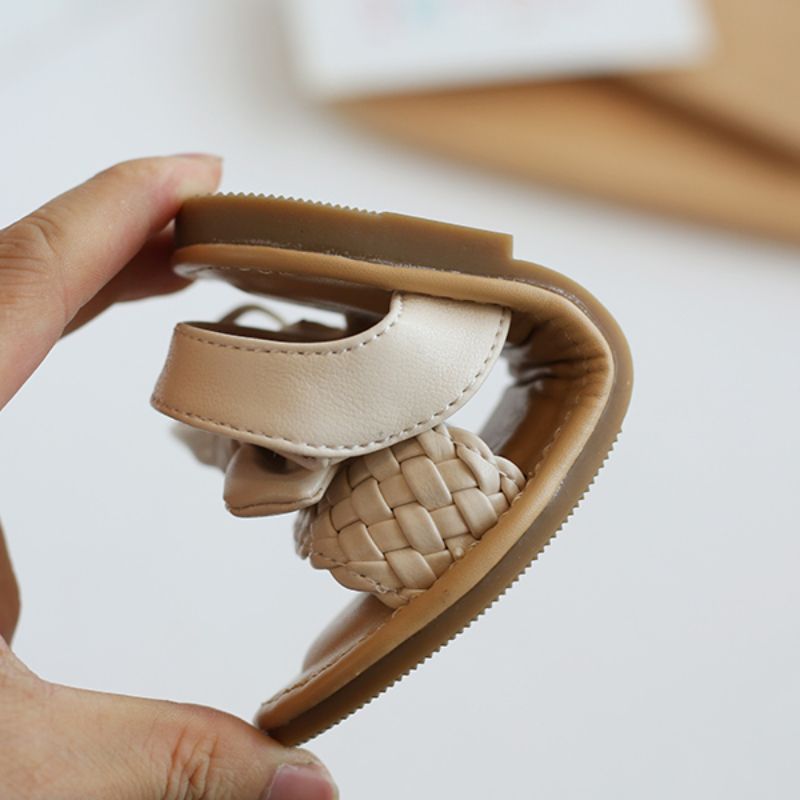 Girl Sandals Bowtie Braided Soft 21-30 Inafnt Children Sliders Bohemia Style Classic Fashion Open Toe Non-slip Kids Flats